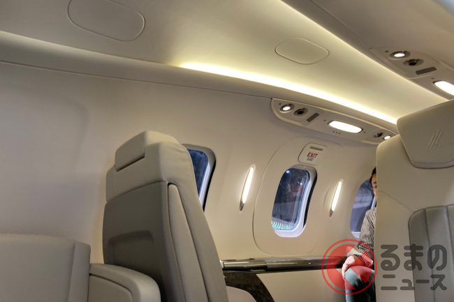 「ジャパンモビリティショー2023」のホンダブースでは「モビリティショー」に相応しいジェット機の展示が行われています。その機内はどんな感じなのでしょうか。
