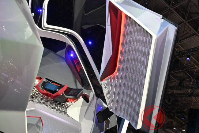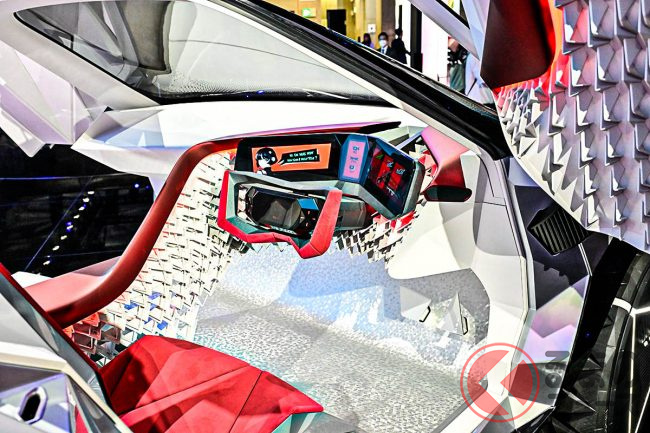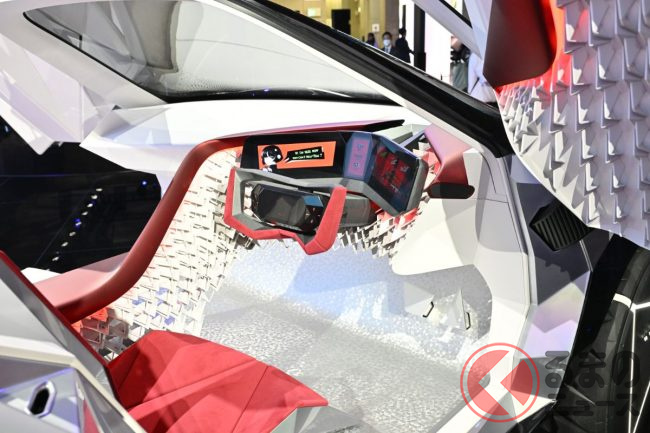 インテリアは和紙や折り紙をモチーフとし、和のテイストを感じさせながらデジタルとアートが融合する室内空間を実現。例えば、車載カメラが撮影したクルマ周辺の景色の映像を、AIがオーナーの好みに応じて日本文化の象徴である漫画調の景色や様々なグラフィックパターンの景色に変換し、コックピットにドライバーを囲むように配置された3面ディスプレイに映し出すなど、現実とメタバースの世界が融合した空間を楽しむことができます。