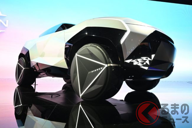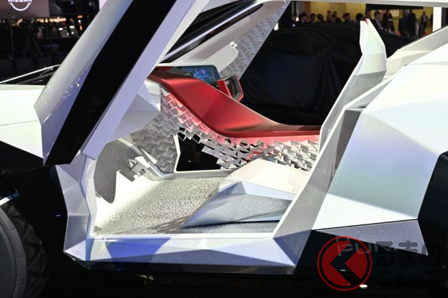 ニッサン次期型「ジューク」!? 斬新”チクチク”内装の「新型ハイパーパンク」世界初公開! 奇抜すぎ「コンパクトクロスオーバー」実車展示