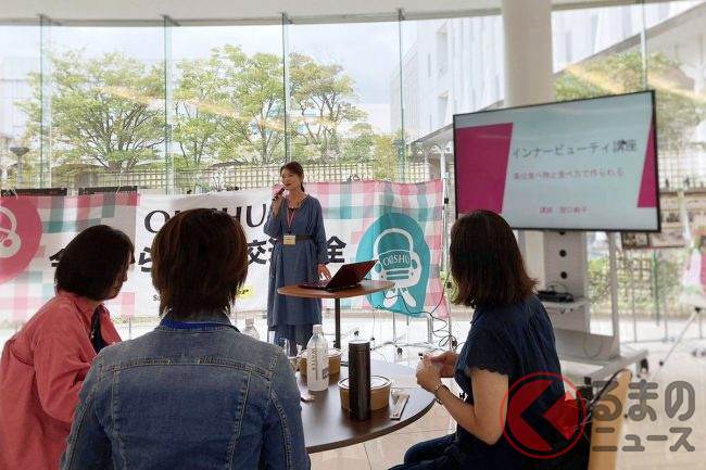 「運転もお肌も美しく」というテーマを設定。関口さんのわかりやすいトークに、参加者はもちろん、OKISHUメンバーやさらにイベントを手伝ったくれたスタッフも興味津々で、質問するシーンも見受けられました。