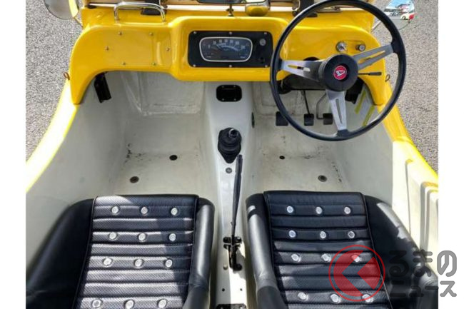 ボディサイズは全長2995mm×全幅1290mm×全高1400mm。ホイールベースは1940mm。車両重量は440kg。最高出力26馬力を発生する356cc水冷2ストローク直列2気筒エンジンを搭載し、4速マニュアルトランスミッションを介して、後輪を駆動させます。最高速度は95km/h、最大積載量は150kg。冷暖房なし、ラジオなし、ドアなし。当時の価格は37万8000円でした。