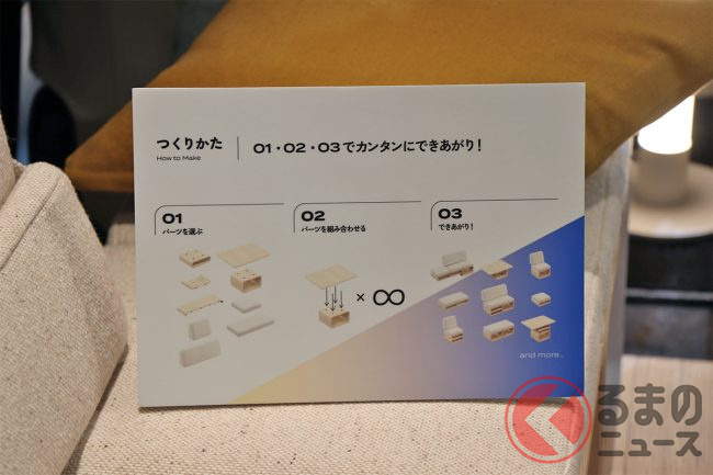 小型の家具モジュールを組み合わせてアレンジする仕組みで、後席空間を多彩に変化することが可能です。