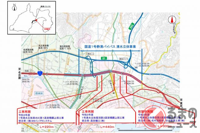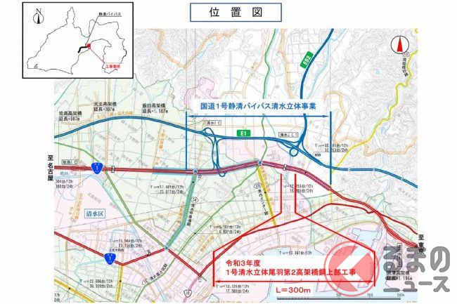2023年7月に工事中の橋桁が落下する事故が起きた国道1号静清バイパス「清水立体」事業について、国土交通省中部地方整備局静岡国道事務所は2023年10月31日、再発防止策を踏まえて一時中止していた工事を順次再開すると発表しました。
