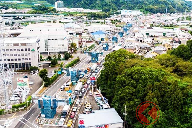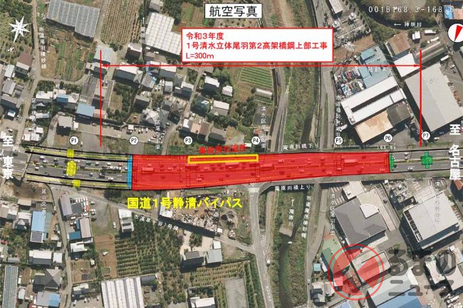 このため今の静清バイパスの上空に延長2.4kmの4車線高架道路を新たに造って交差点を立体交差に変え、渋滞緩和や清水ICへのアクセス改善、交通事故削減などを目指す事業が進んでいます。