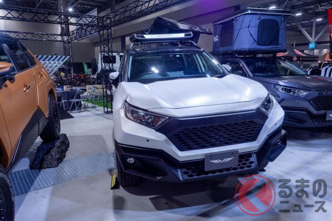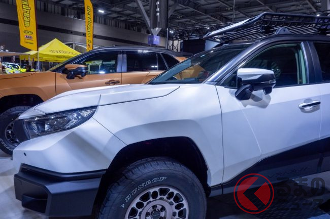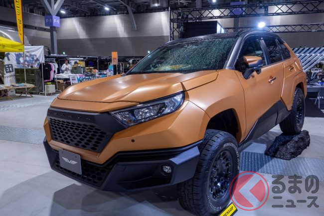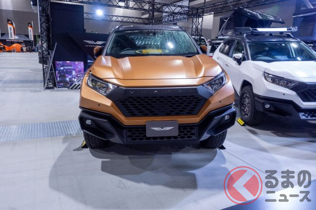 「えっ…!」トヨタ「RAV4」なの!? まるで“装甲車”な「マーズ」実車展示! 「サイバー感」高い“ド迫力マシン”登場