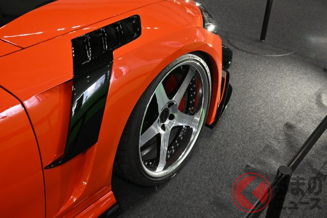 ド迫力ワイドボディ&ローダウンの日産「フェアレディZ」実車展示! 鮮烈オレンジの「ヴェールサイド FFZ400」登場