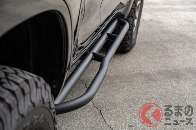 外装のカラーは「ミッドナイト・ブラック・メタリック」に仕上げられており、前述のサスペンションに合わせたオフロード用タイヤを履き、より悪路走破性が高い外観となっています。