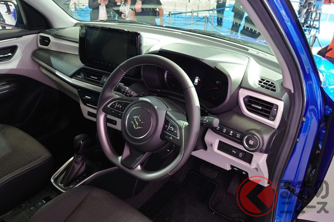 他メーカーではエントリーモデルであってもボディサイズの大型化が進んでいるなかで、新型スイフトは従来通りの5ナンバーサイズを死守。開発時には3ナンバー化も検討したそうですが、軽自動車からサイズアップするユーザーも少なくないスズキ車ということで、やはり日常の取り回しの良さに優れる5ナンバーサイズを継続することにしたようです。