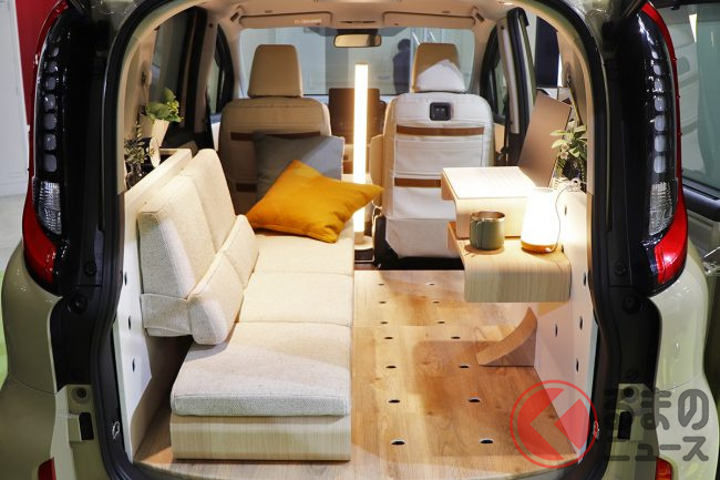 トヨタ「シエンタ」“2シーター車中泊仕様”世界初公開に「オシャレなお部屋」「こういうのが欲しい」と反響! 変身アイテム「JUNO」へ「実現に期待大」の声も