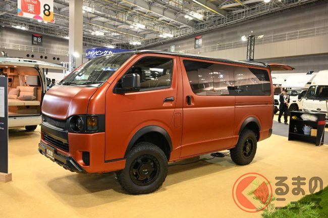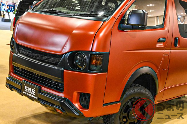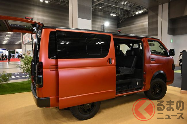 ド迫力の新「”SUV”ハイエース」初公開! 丸目&鮮烈ベンツ・オレンジ採用の新型「ヴェリアスルーム」実車展示
