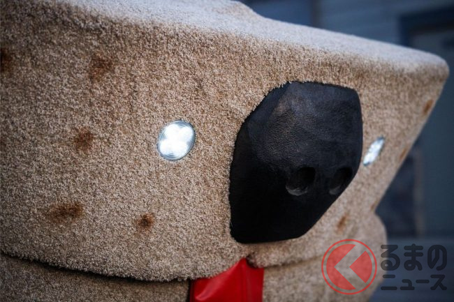 一番特徴的なのは、やはりその外観。茶色のカーペットを外装全体に包装することで、作中と同じく“犬らしさ”を見事に表現しています。フロントにはしっかり目や鼻、舌などの装飾パーツも付けています。