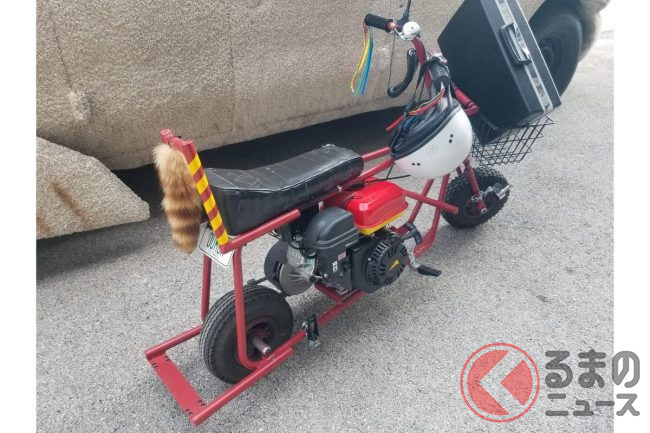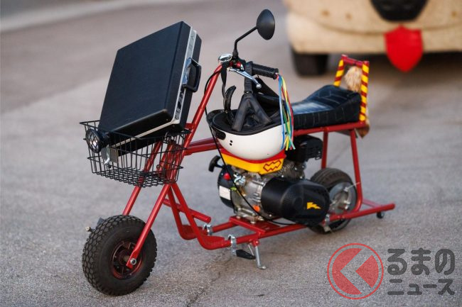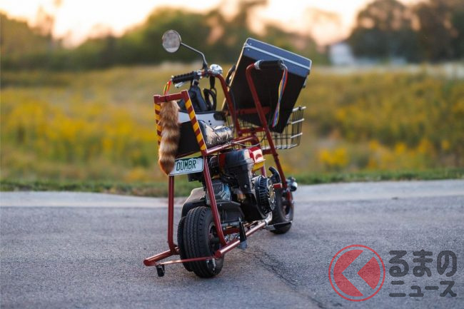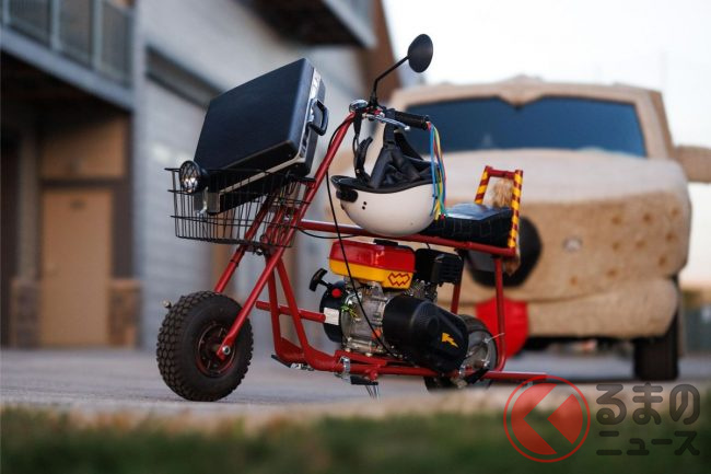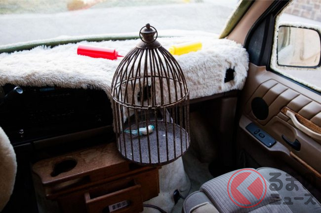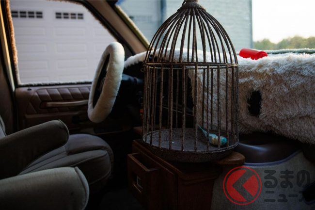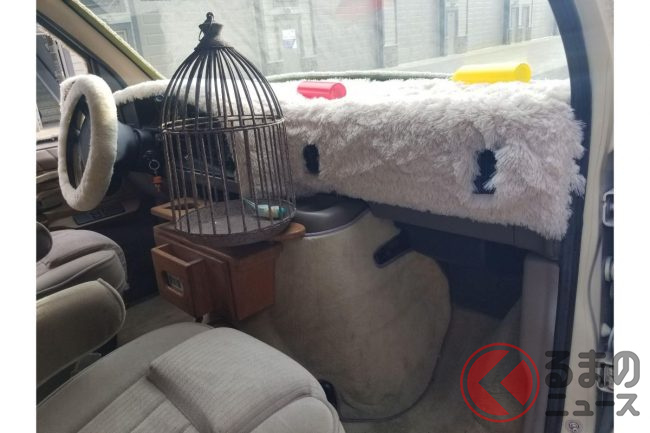 内装も手抜かり無く、毛羽立ったダッシュマットとハンドルカバーを装備したり、鳥の死骸を模したマスコット入の鳥かごを置いたりするなど作中のイメージをしっかりと再現。さらに映画に登場したミニバイクのレプリカも付属しているそうです。