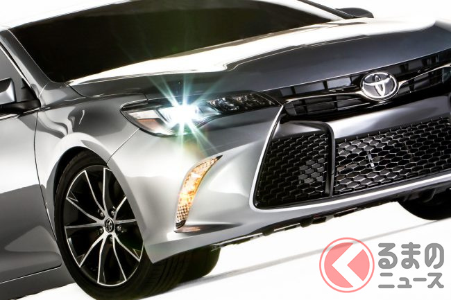 トヨタ新型「カムリ」世界初公開! 6年ぶり全面刷新!? 斬新「コの字ヘッドライト」採用で11代目登場へ 11月14日発表