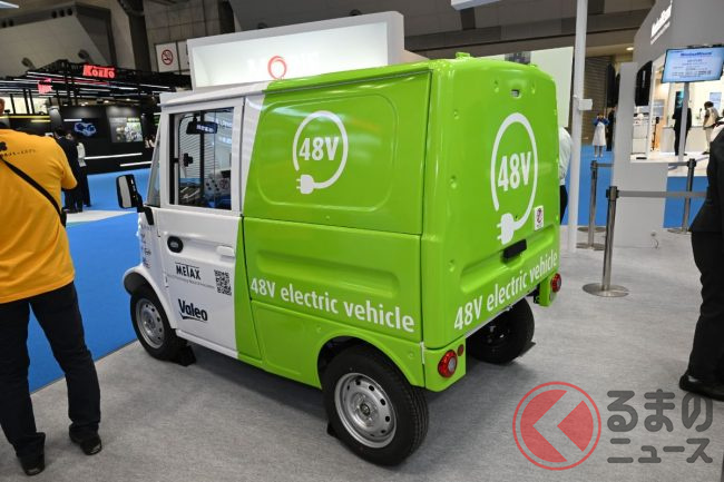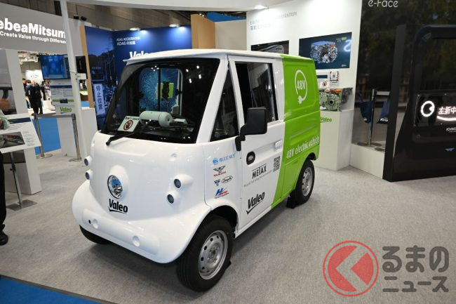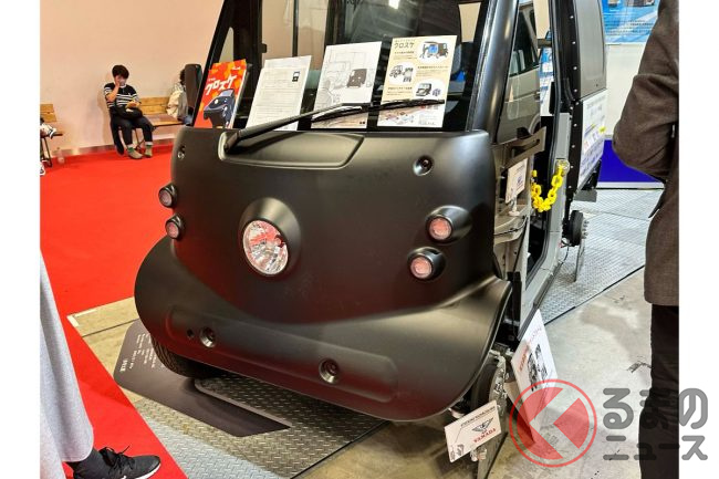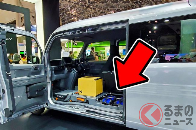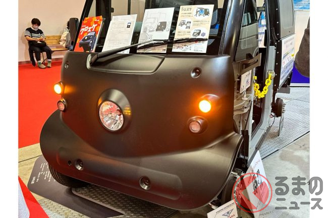 斬新すぎる新型「“一眼”商用バン」初公開!「充電待ち」の無い「新型EV」2025年登場か!? めちゃカワイイ「クロスケ」実車展示