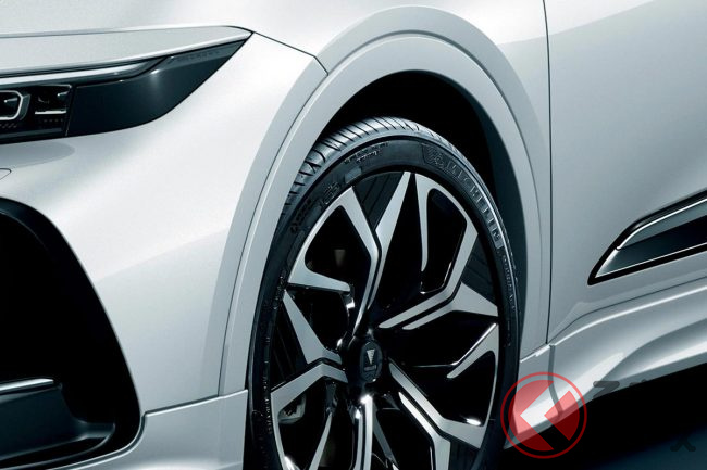 また「クラウン クロスオーバーMODELLISTA Concept」には、フロントスポイラー、サイドスカート、リアスパッツ、トランクスポイラーに加え、21インチアルミホイールが用意されています。