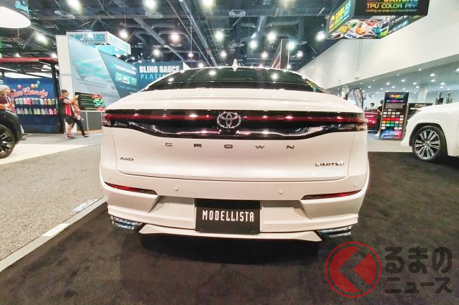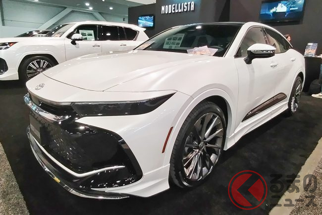 ド迫力顔のトヨタ新型「クラウン」実車展示! オーラ凄すぎるエアロ仕様の反応は? 米でお披露