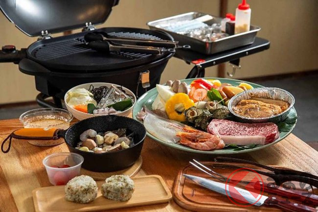 案内所のカウンターと事務室だった場所はキッチンに変わり、当時の名残ある空間で調理が可能に。また、食材を事前予約すると、地域の民宿や漁協の協力のもと海の幸を盛り込んだ食材セットが用意されます。