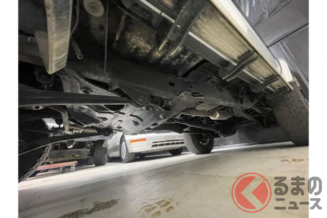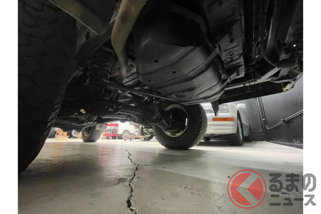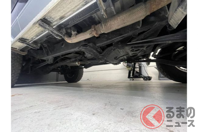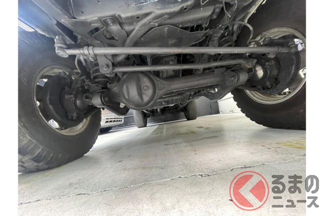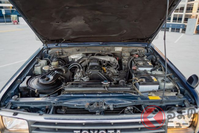 エンジンルームは汚れなどがありますが比較的キレイなまま。下回りも一部のサビこそありますが、シャシーブラックで塗装されており、目立つような補修箇所はないといい、年式が経過した四輪駆動車としては良好な状態を維持しています。