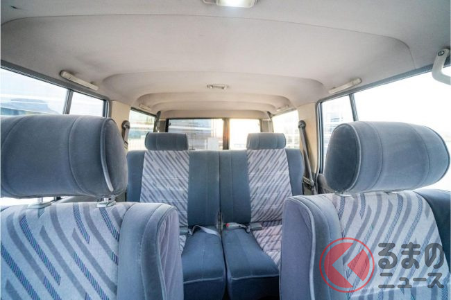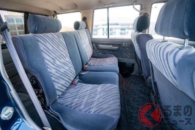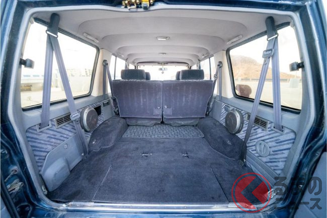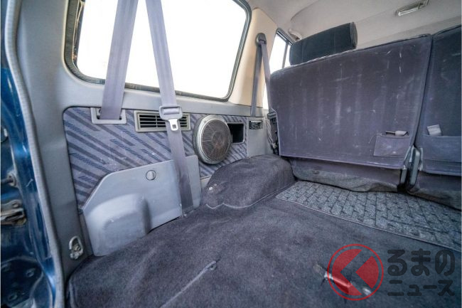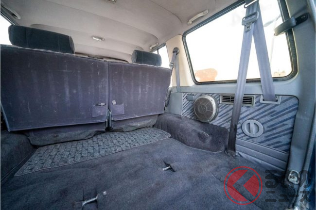 なお、ラゲッジルームには3列目用と思われるシートベルトが装備されていますが、日本では4ナンバーの商用車登録となっていたためか、シートは取り外されているようです。