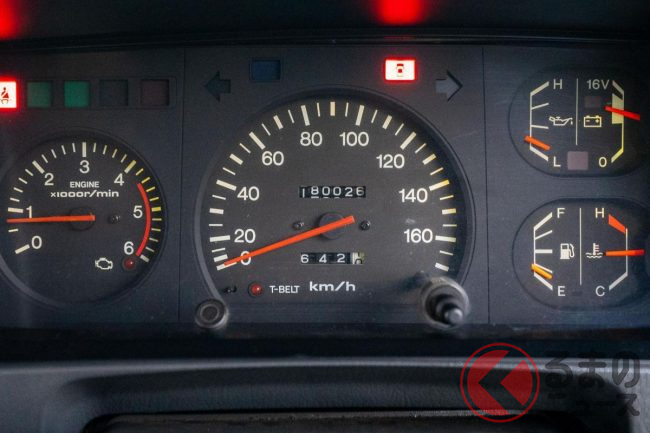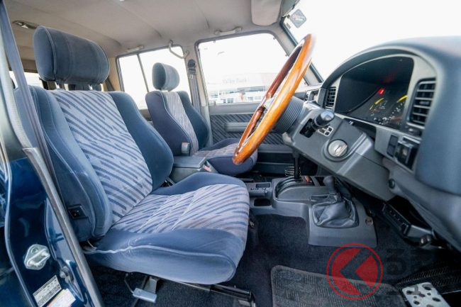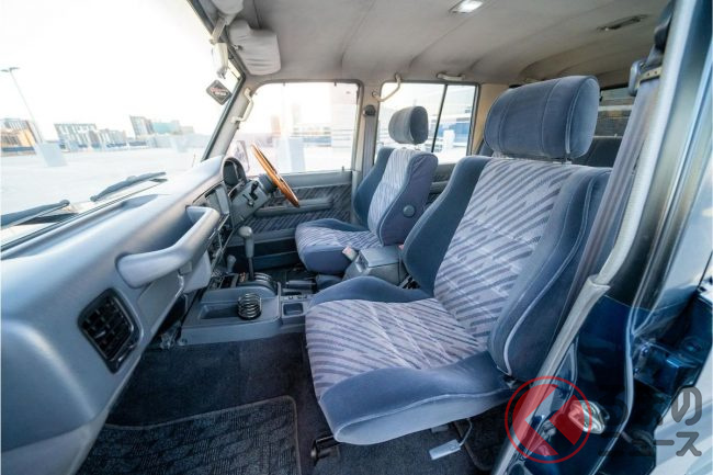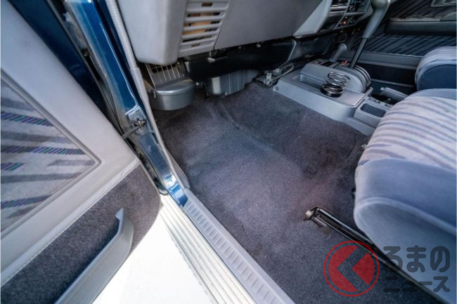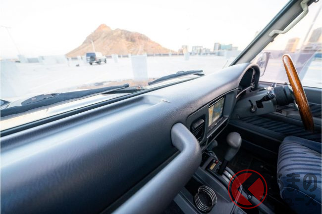 一方で内装はキレイな状態が維持されており、ダッシュボードのわずかな割れや樹脂部の白化、運転席シートのヘタリはあるものの、大きな汚れなどもなく比較的純正状態が維持されています。