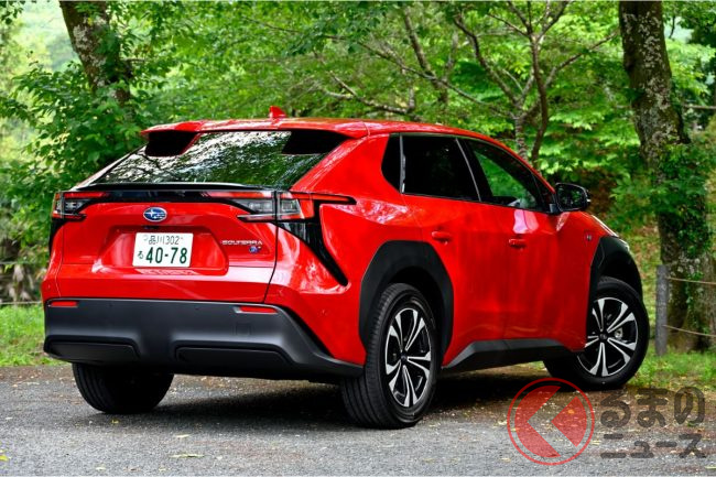 BEV専用プラットフォーム「e-SUBARU Global Platform」からトヨタと共同開発し、ガソリン車と変わらないスバルらしい動的質感の高い走りを備えたモデルとして評価されています。