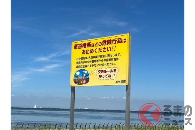 このため、この場所が話題となり多くの観光客が訪れたことで、中央分離帯などから写真を取るために路上を横断する人や、路上に座り込むなどの迷惑行為が増えるほか、観光客による事故も増加。こうした一部のユーザーによるルールを守らない危険行為によって、重々しい黄色い注意書きが貼られるようになってしまったのです。