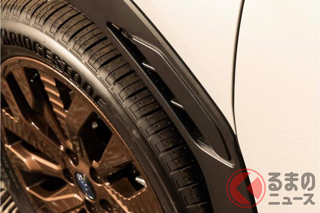 具体的には前輪開口部の後縁にエアアウトレットを設けることで、ホイールハウスからの空気排出を向上させることで、前輪タイヤの浮き上がりを低減し、走行安定性の向上に貢献します。
