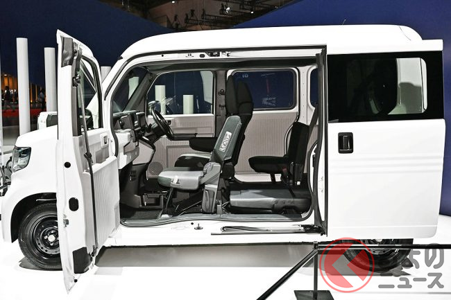 ホンダは「ジャパンモビリティショー2023」に、2024年春発売予定の新型軽商用EV(電気自動車)バン「N-VAN e:(エヌバン イー)」を出展しました。商用のみならず個人ユーザーにも使って欲しいという、開発者の狙いについて紹介します。