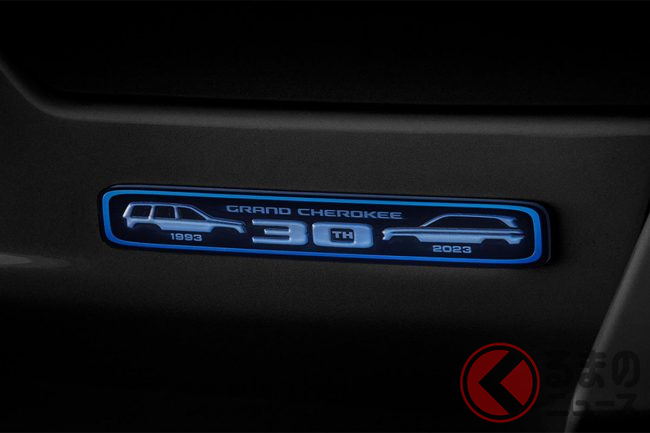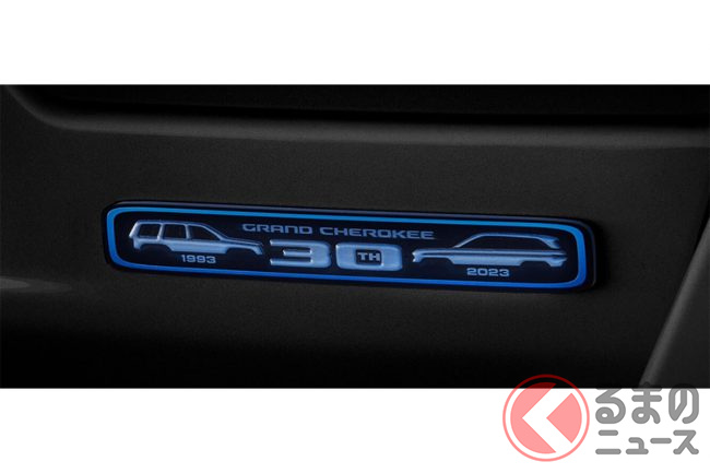 このほかリアゲートには、1993年に誕生した当時のGrand Cherokeeと現行モデルのシルエットが向かい合わせになる、30周年限定車ならではのデザインをあしらった専用バッジを備えます。