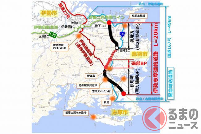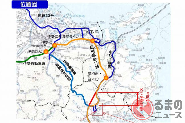 三重県の地域高規格道路「伊勢志摩連絡道路」の一部を構成する国道167号磯部バイパスが、2024年度に開通する予定です。どのような計画なのでしょうか。