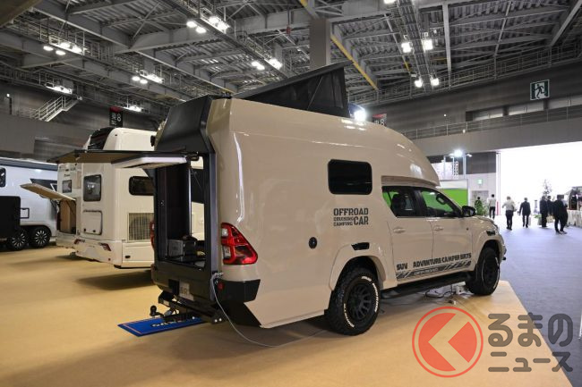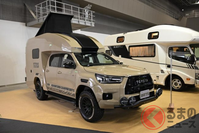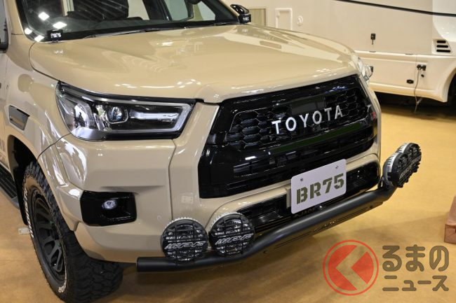 1000万円超!超豪華なトヨタ「ハイラックス 車中泊仕様」実車展示! シャワールームも完備で贅沢な“大人の秘密基地モデル”とは?