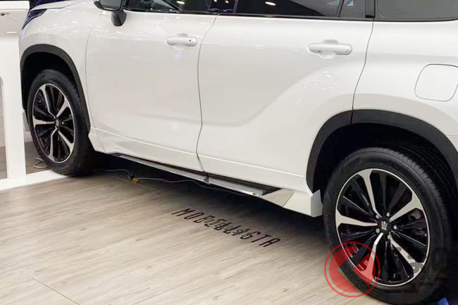 サイドやリアは、通常仕様で樹脂パーツが装着される部分に、モデリスタ仕様ではボディ同色+メッキパーツを取り付けて、全体的にプレミアム感が増した印象になりました。