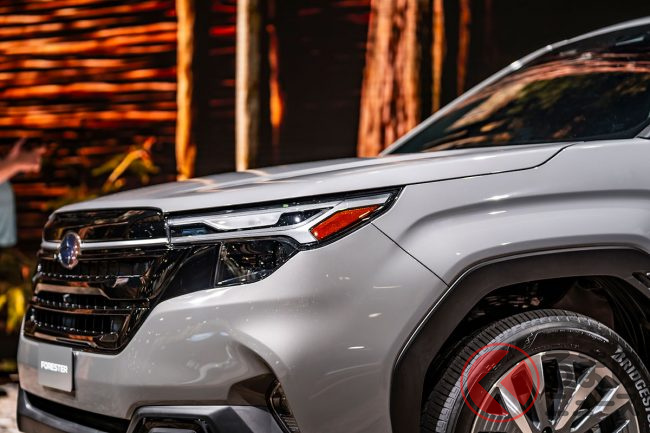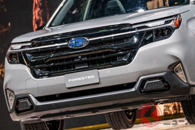 スバル新型「フォレスター」初公開! SUVらしい“ゴツ顔”へ進化!? 初のハイブリッド搭載も宣言!