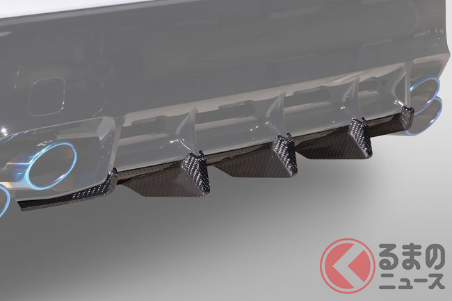 リヤバンパーサイドフィンは、ボディ側面の空気の流れを整え、リヤのタイヤハウスで発生する乱れを効果的に解消。リヤアンダーディフューザーはバンパー下部のフィン形状を拡大し、ボディ下部の空力効果を最適化します。
