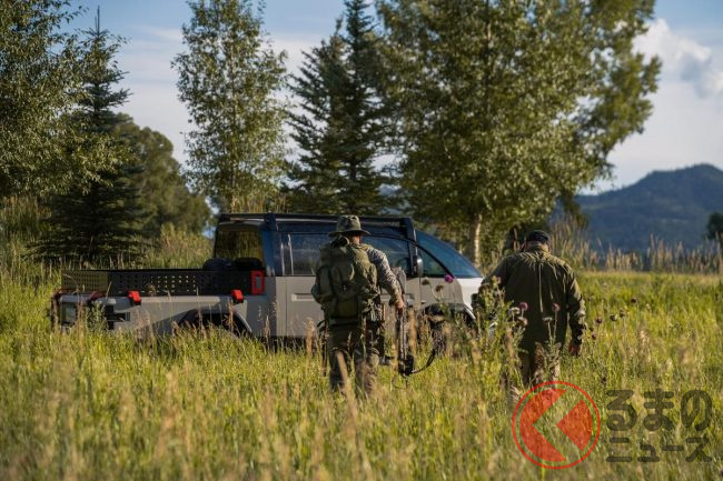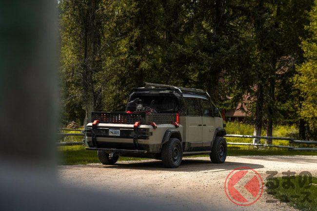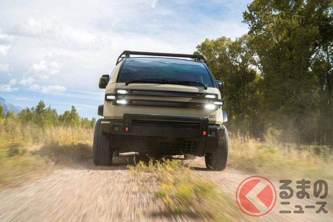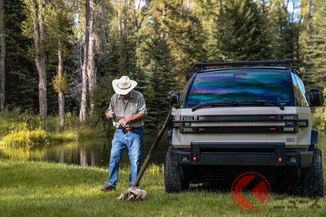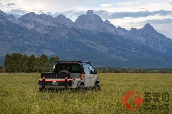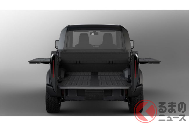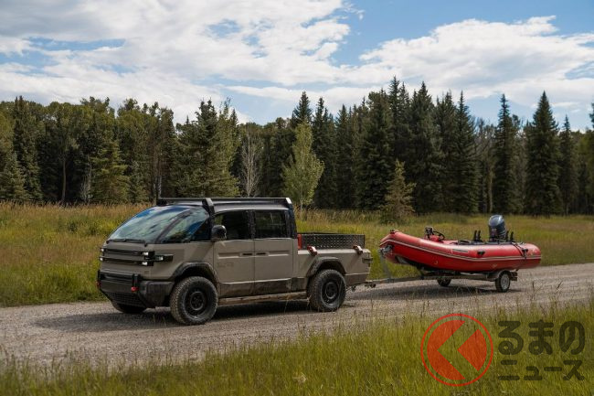 また、従来からラインナップされているピックアップトラックは、ボディサイズは全長4677mm×全幅1980mm×全高1920mm。モーターの最高出力はLTVと同じ600馬力。一充電あたりの走行可能距離は200マイル(約320km)強です。アメリカンブルドッグは、同じピックアップトラックでもミリタリーの雰囲気が強く、アウトドア色が一段と色濃くなっているのが特徴です。