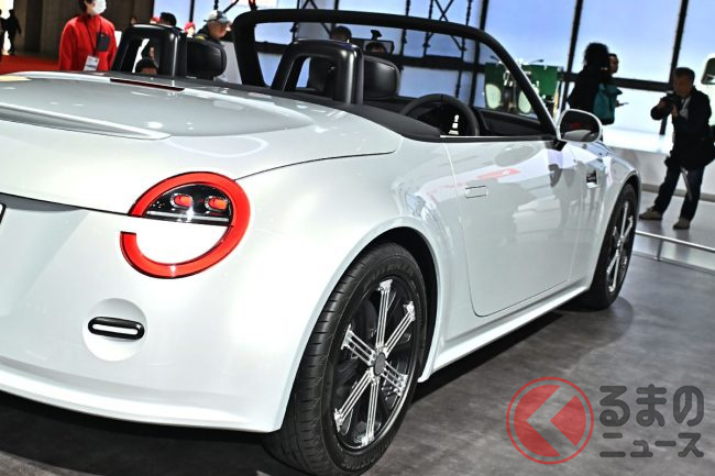 ダイハツ新型「2シーター小型スポーツカー」実車展示! 軽規格超えボディ&MT採用の可能性も!? 市販化望まれる新モデルが“再”登場