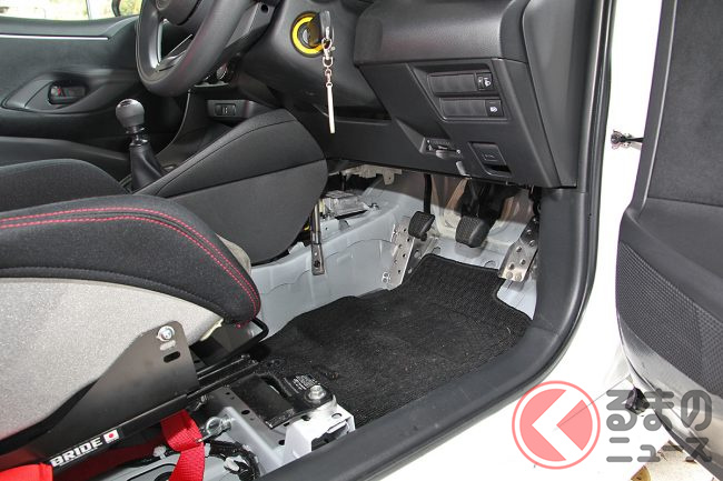 エンジン本体はノーマルですが、同社から販売が予定されている純正よりも35%軽量となったフライホイールが装着済みで、アクセルレスポンスはノーマルとは全く違う印象。クスコ製のLSDも相まってグイグイ曲がるハンドリングマシンに変貌していたのが印象的でした。