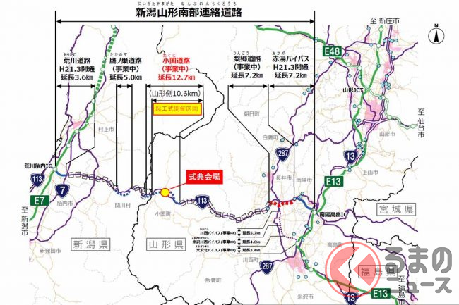 東北中央道に接続! 将来は「福島‐新潟」の抜け道になる国道287号「米沢長井道路」2日延伸