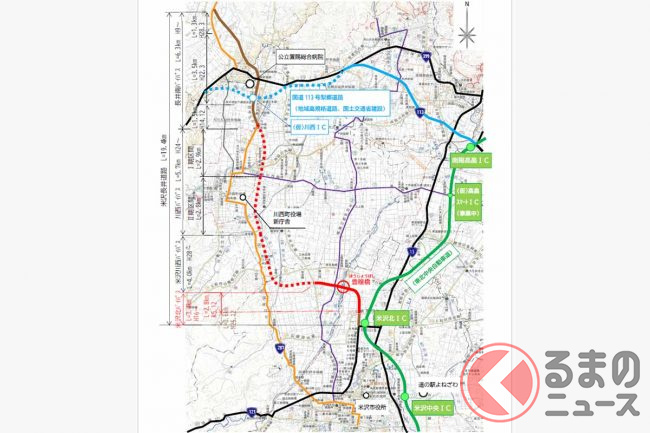 これにより米沢北バイパスの全線(3.4km)が開通し、国道13号や東北中央道の米沢北ICから川西町方面へのアクセス性が向上します。