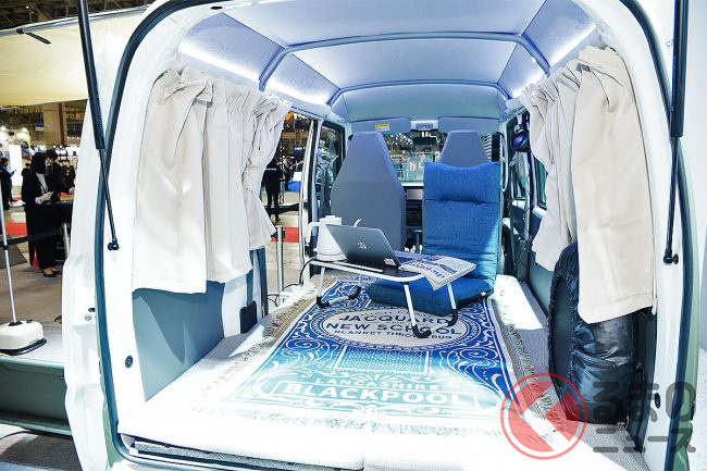 車載の大型バッテリーを活用し、平日は移動式オフィスとして、休日はソロキャンプを楽しめる車中泊カーとしてマルチに楽しめるという提案でした。