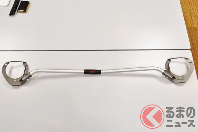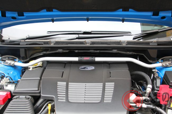フレキシブル系パフォーマンスパーツは、フレキシブルタワーバーと、フレキシブルドロースティフナー リアを装着していましたが、これはやみくもにボディを固めるのではなく、強靭(きょうじん)でしなやかな特性を実現するためのアイテムで、フロント内輪を効果的に使うことができるようになるため、わずかにステアリングを切り込んだ際の応答遅れをなくし、思い通りのハンドリングを実現してくれるというもの。