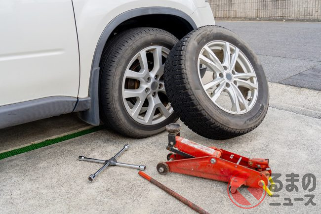 クルマの下敷きに… 後を絶たない「ジャッキアップ事故」なぜ? タイヤ交換時期に注意! 使う時に注意するべきコトは