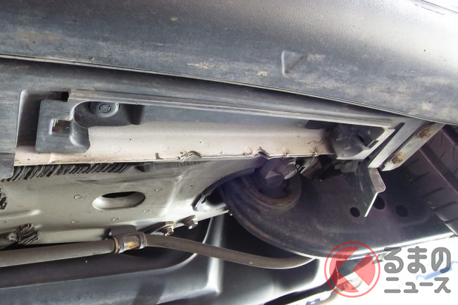 誤った場所にジャッキを当てるとジャッキが外れたり、車体がへこんだりするケースもあるため、クルマの取扱説明書でジャッキアップポイントをよく確認しておきましょう。