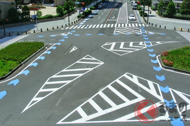 事故が起きやすい箇所でもあるため、安全な走行ための誘導および注意喚起の意味もあるほか、右折前にあえて導流部分を設けることで、右折車両の速度を落とさせるという目的もあるのです」