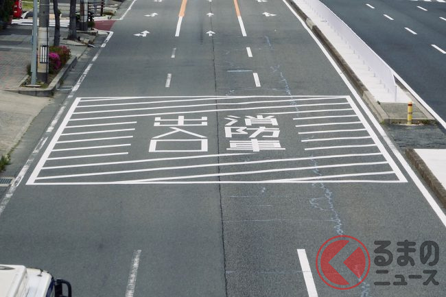 シマシマ模様の道路「ゼブラゾーン」通行しても違反じゃない? 違反になる“似たようなシマ柄”も存在!? 何が異なる?