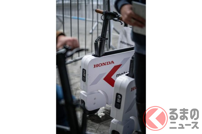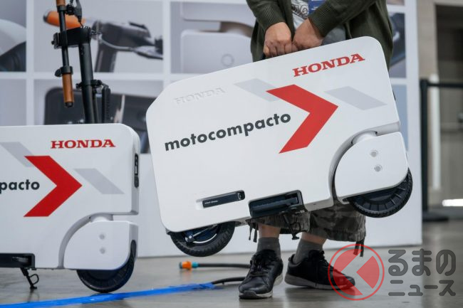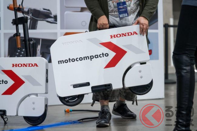 ジャパンモビリティショー2023で実車展示されて大きな話題となったホンダ「motocompacto」(モトコンパクト)は重量17kgの小型電動モビリティです。