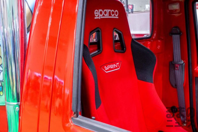 特徴的なのは外観に留まりません。車内にはレトロな木造のステアリングホイールを装備。全体的にはクラシックな雰囲気です。しかし、シートだけはクールなレーシングシートが備わります。