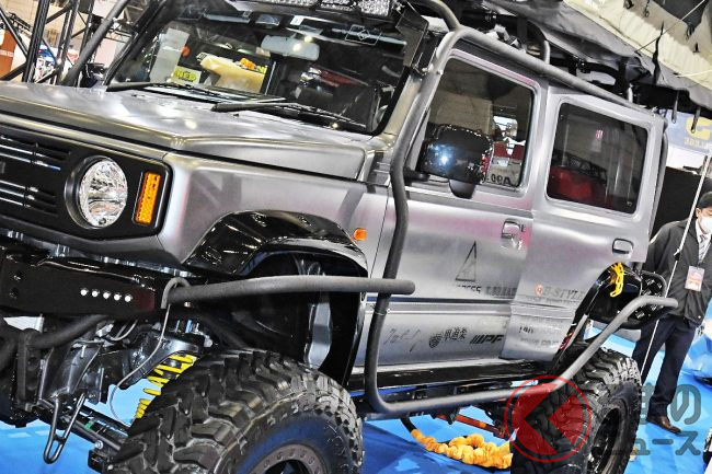 まさかのスズキ「ジムニー5ドア」日本で登場していた!? ド迫力「ロングボディ」×ゴツカスタムがカッコイイ! 謎の「手作りジムニー」とは