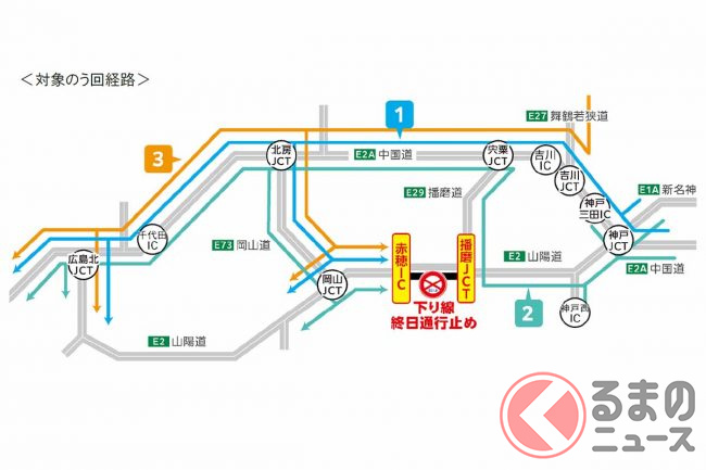 NEXCO西日本は、利用の際は最新の交通情報を確認しつつ、中国道へ広域迂回するよう協力を呼び掛けています。
