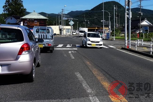 バイク出すら…はみ出す可能性大! 右折レーンはどこにある?